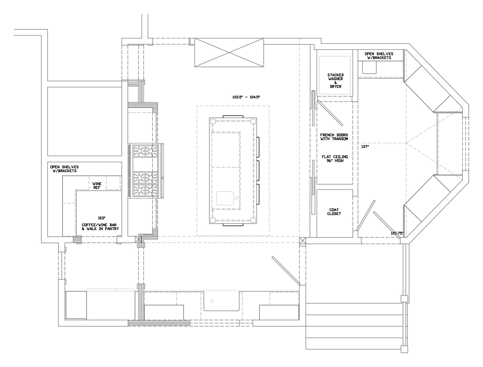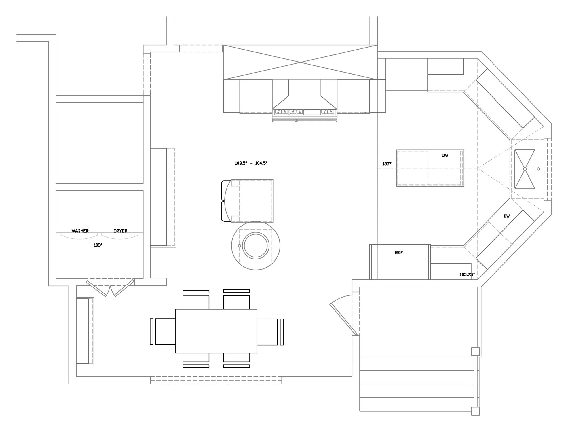 I love turning challenges into opportunities. Breaking up this sprawling space into distinct areas fulfilled the clients' need for a better functioning kitchen and laundry while also creating space for a new mudroom for their growing family. Obstacles and angles became focal points, as seen with the new range niche that hid a structural post and mudroom that concealed the stacked laundry equipment.
